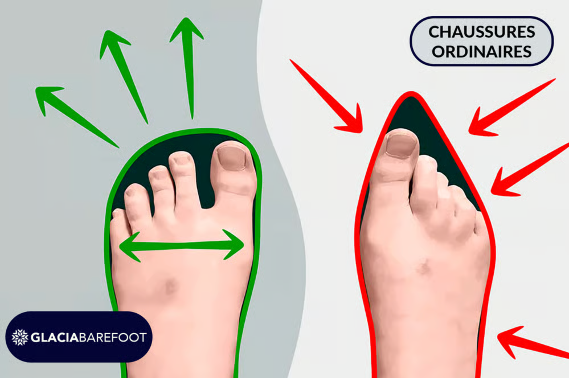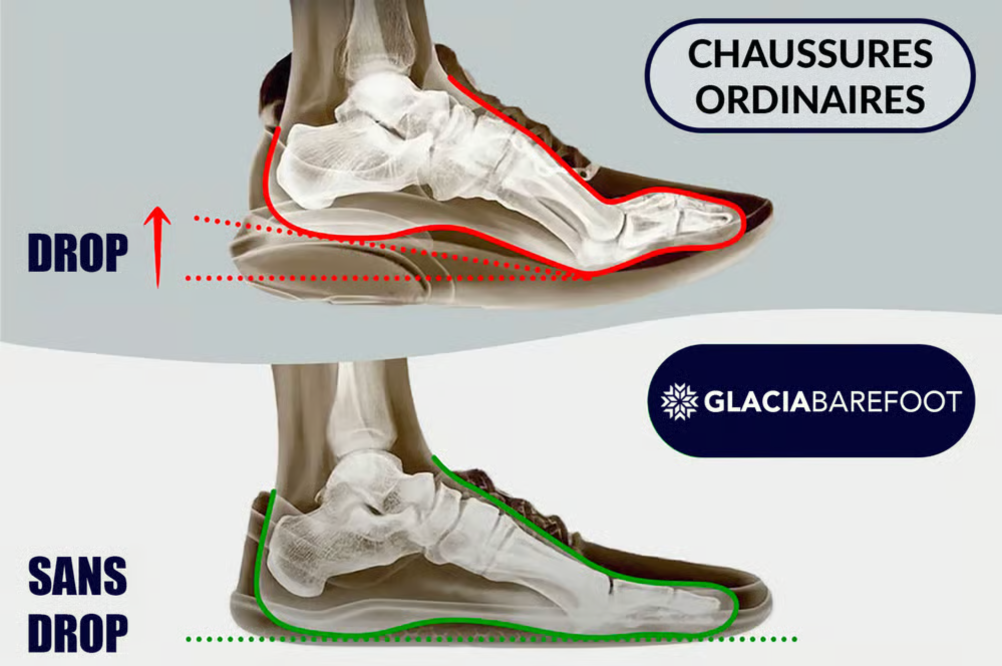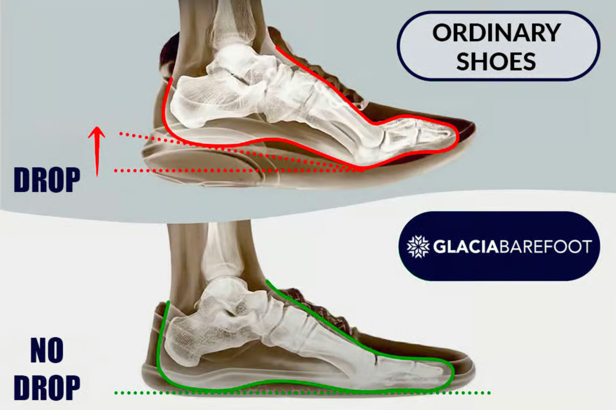 Unlike traditional shoes with a heel drop, Glacia Barefoot shoes feature a thin sole that allows your feet to remain naturally aligned, avoiding any disruption to the musculoskeletal chain while walking.